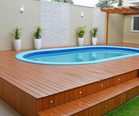 Deck de madeira é adequado para o entorno de piscina, varanda e revestimento de parede. Devido a sua versatilidade é uma ótima alternativa para áreas externas, como jardins e ambientes com piscina e sauna. Seu uso garante um toque especial, trazendo personalidade e elegância para o ambiente, além de agregar bem-estar e aumentar a área de lazer da casa.