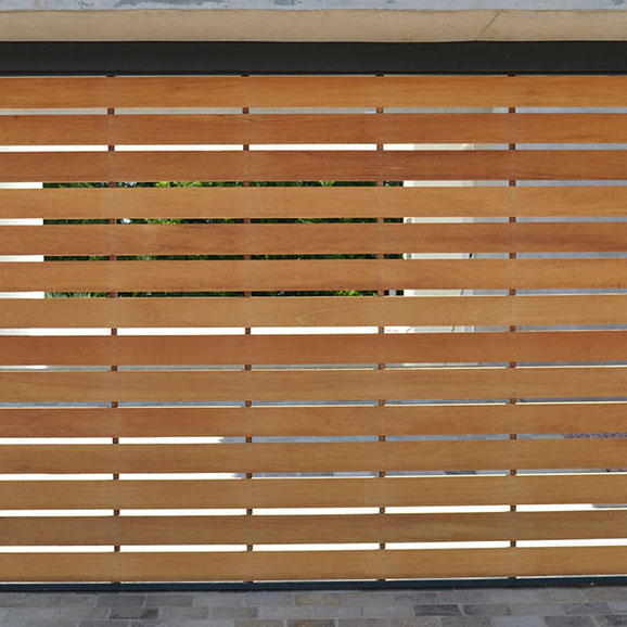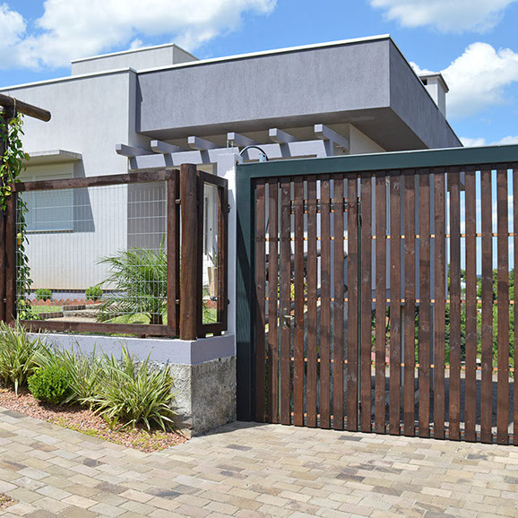 Portões de madeira garante personalidade e elegância para o ambiente.