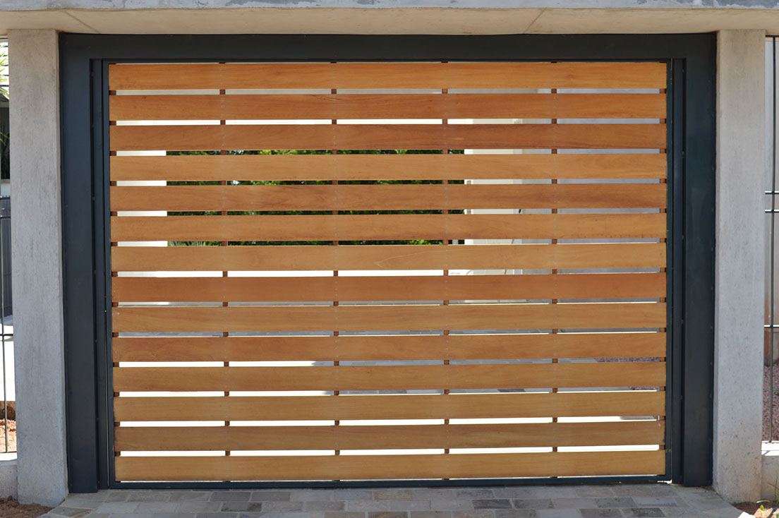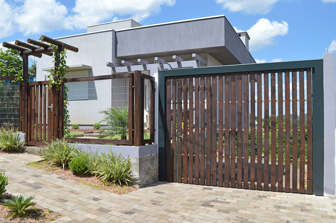Portões de madeira garante personalidade e elegância para o ambiente.